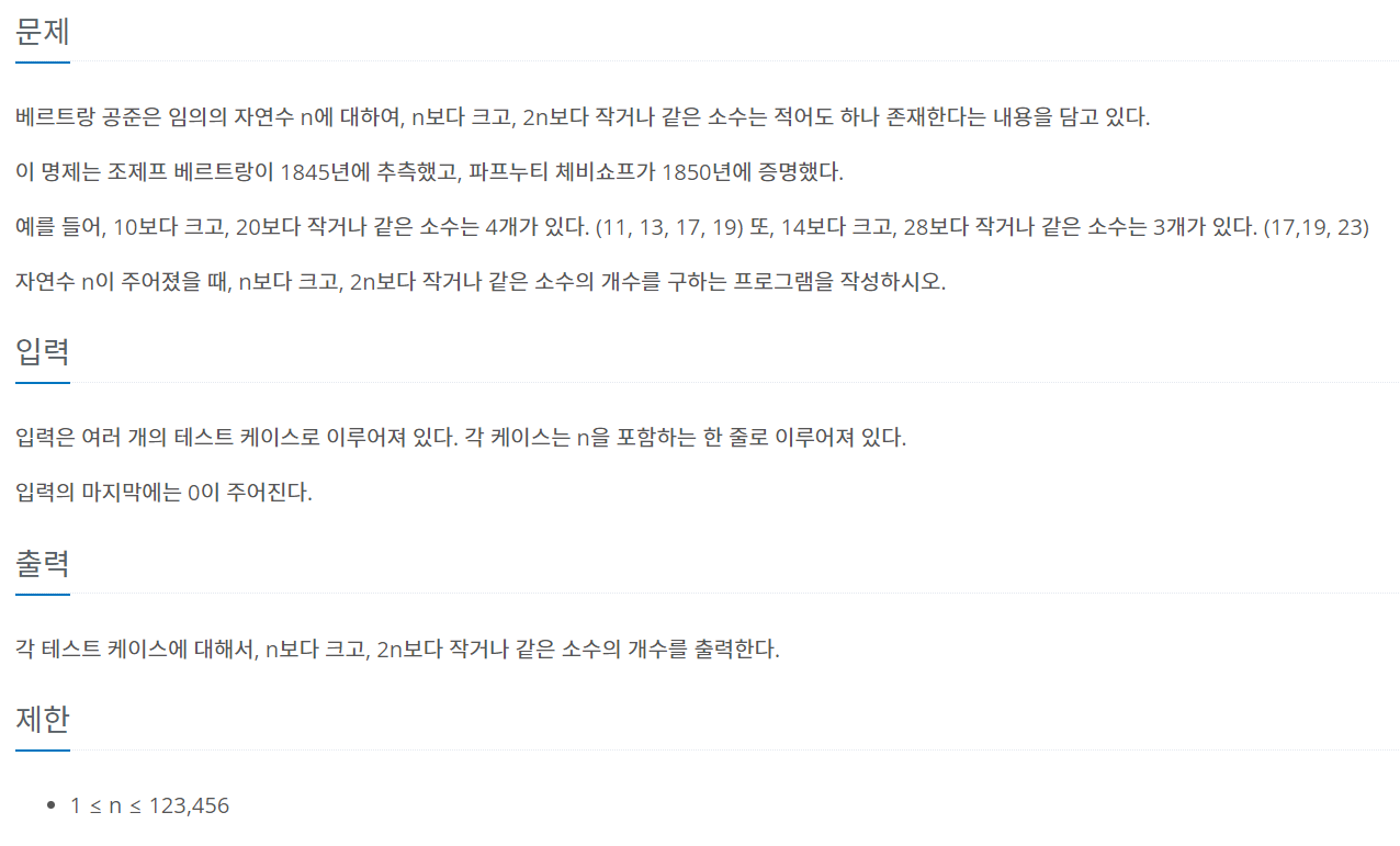 1일1백준 / JAVA : 4948번 베르트랑 공준